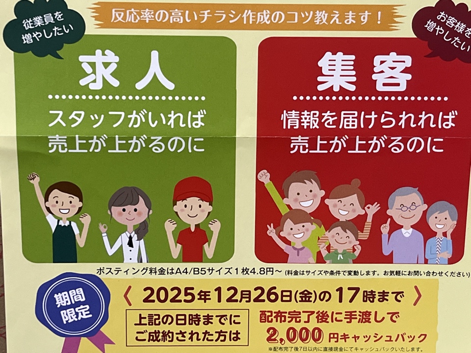- ポスティング会社クラシード立川の星です。 突然ですが、現在キャッシュバックキャンペーンを開催し...続きを読む