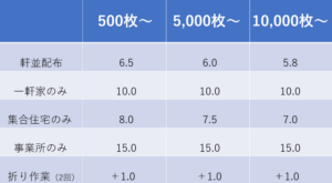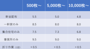 ※A4以上のサイズの配布は必ず折り配布となります。料金表は折って納品された場合の料金表示です。